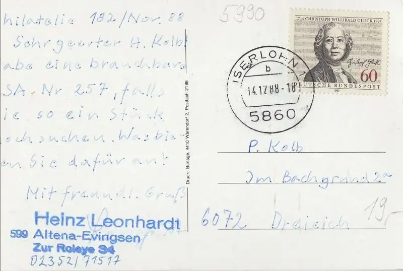 Postleitzahl:58741 (neu) / W 5990 (alt)