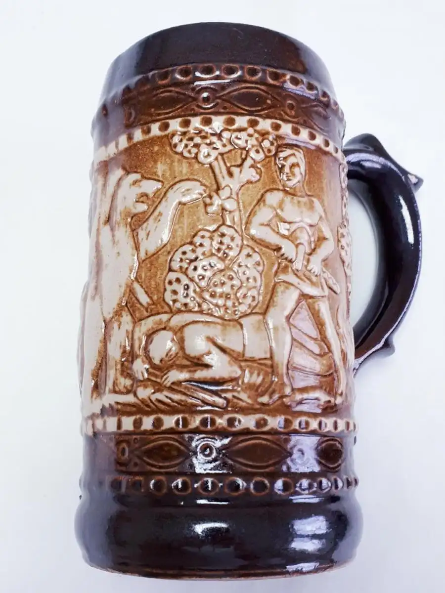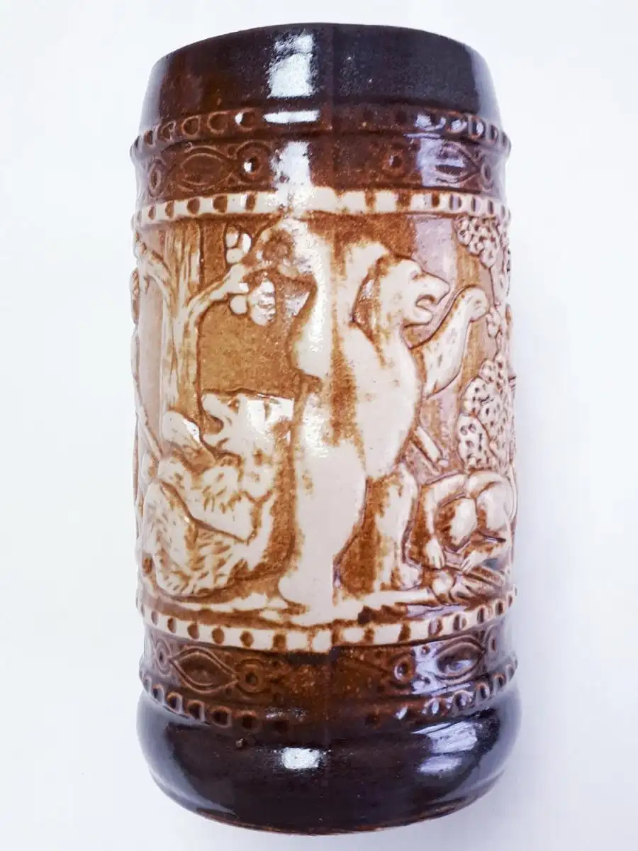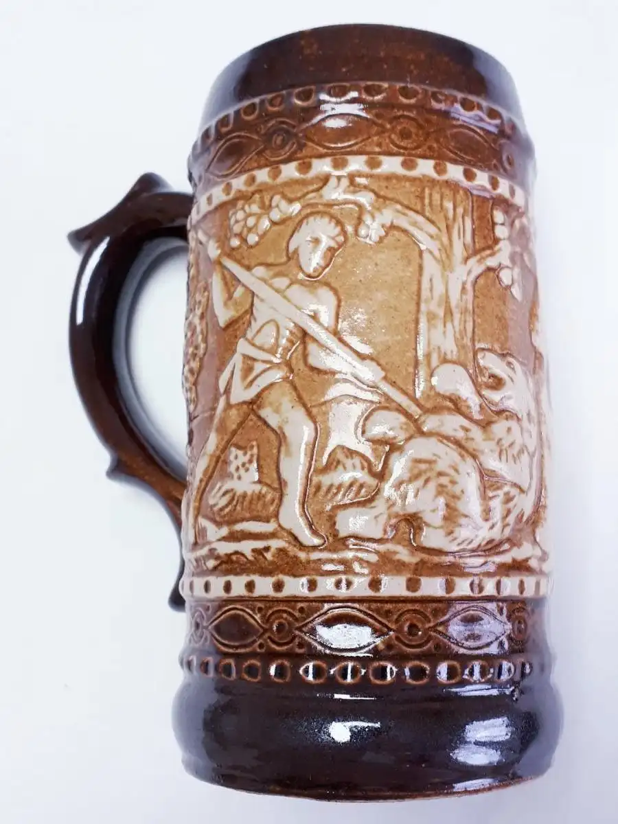 Alter Bierkrug Humpen Bärenjagd PCR.