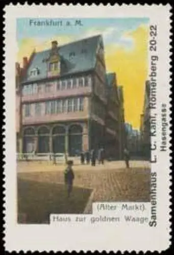 Haus zur goldenen Waage, Größe/Zustand: 5x7 , guter Zustand, Original alte Reklamemarke die seinerzeit für die Werbung benutzt wurde