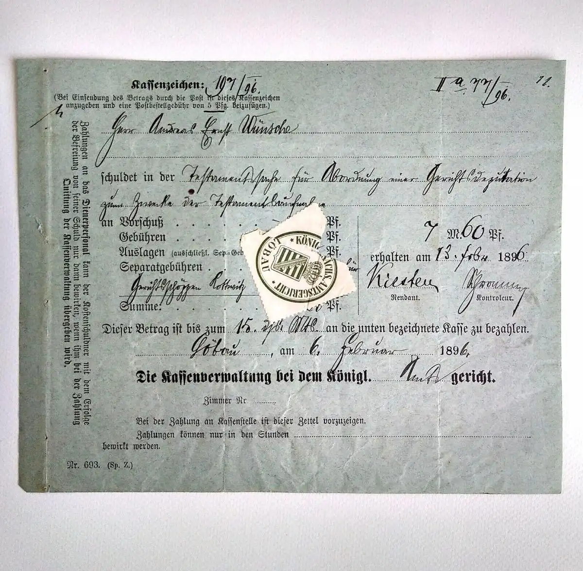 Originales Dokument, Abmessungen: ca. 21 x 16,5 cm.