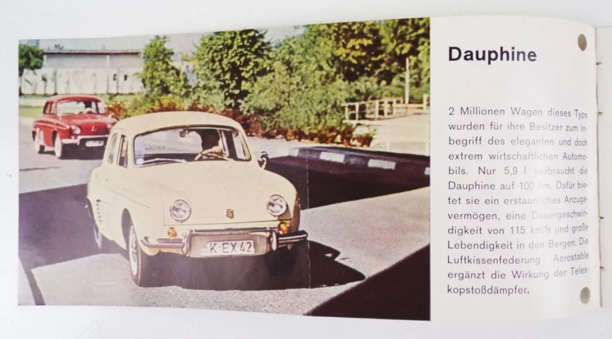 Originales Prospekt, Das Renault Programm 1962. Querformat: 20,5 x 9,5 cm. 10 Seiten. Erhaltung: gelocht, stellenweise leicht unsauber, mittig gefaltet, ansonsten gut, alles weitere siehe bitte Fotos.