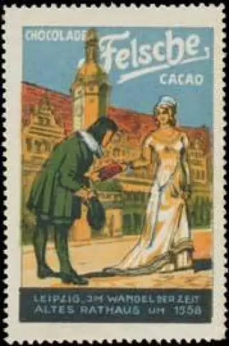 Leipzig im Wandel der Zeit, Chocolade-Cacao Wilhelm Felsche, Schokolade, Größe/Zustand: 6x4 , guter Zustand, Original alte Reklamemarke die seinerzeit für die Werbung benutzt wurde