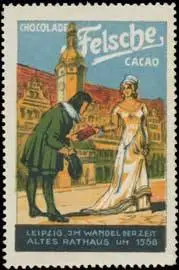 Leipzig im Wandel der Zeit, Chocolade-Cacao Wilhelm Felsche, Schokolade, Größe/Zustand: 6x4 , guter Zustand, Original alte Reklamemarke die seinerzeit für die Werbung benutzt wurde