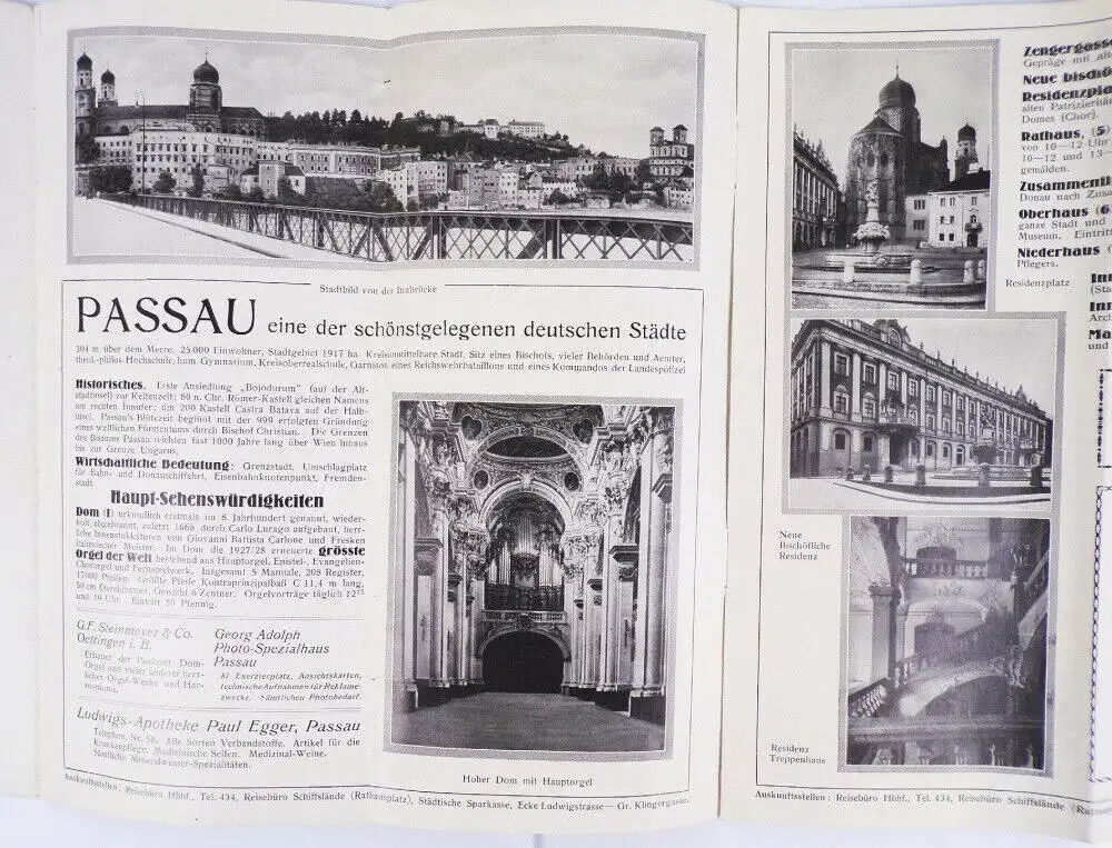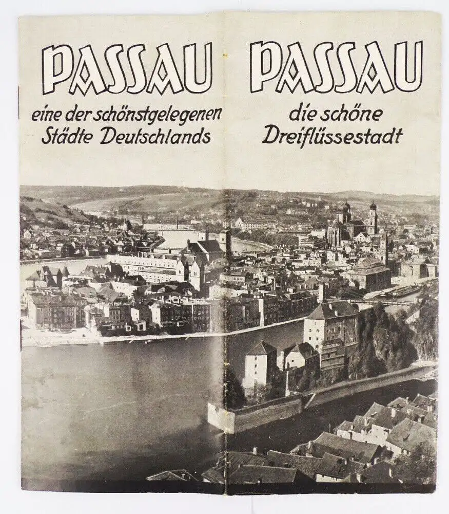 Originales, altes Reiseprospekt, Passau, um 1930. Insgesamt 10 Seiten, teilweise aufklappbar. Erhaltung: leichte Gebrauchsspuren vorhanden, ansonsten gut, alles weitere siehe bitte Fotos.