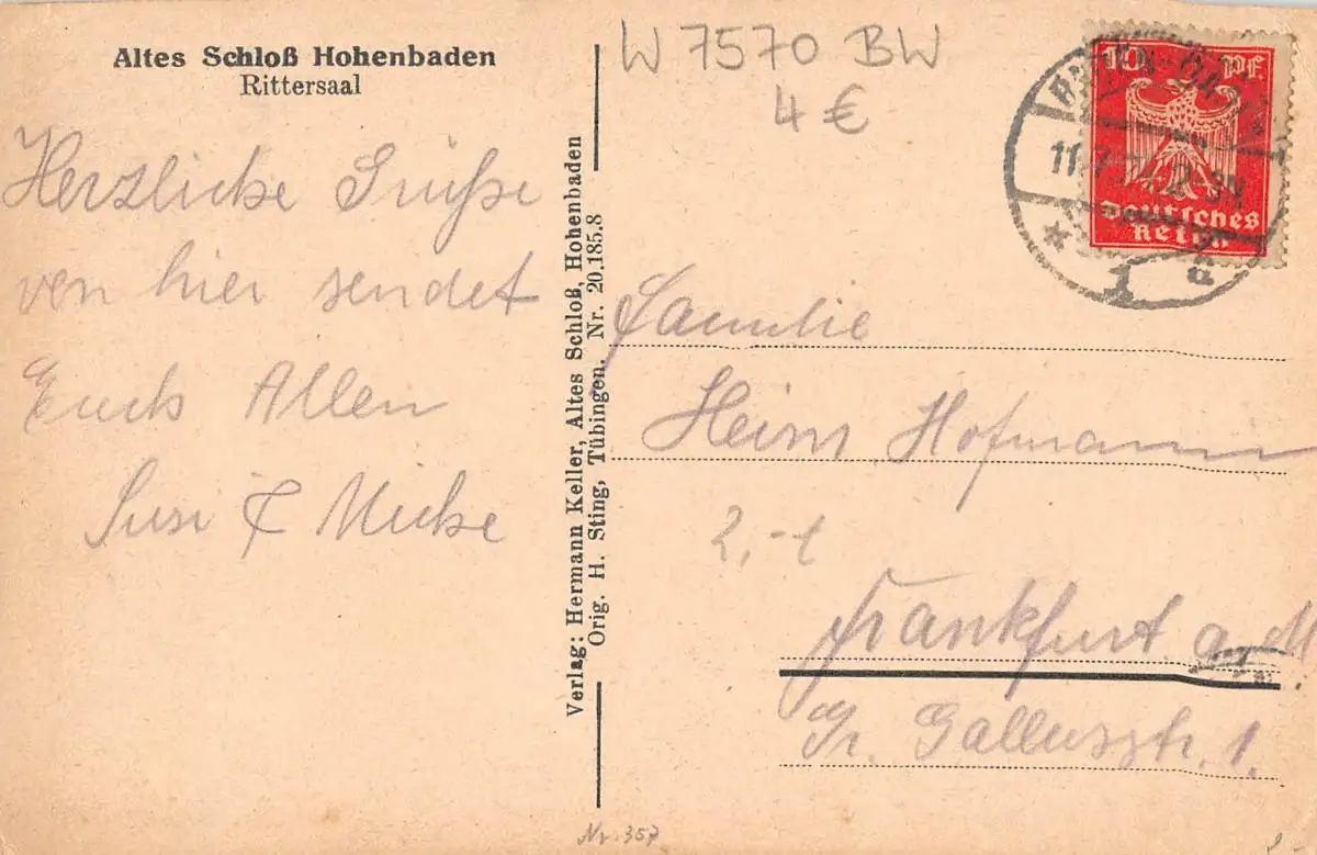 Altes Schloss Hohenbaden - Rittersaal gl1924 155.604