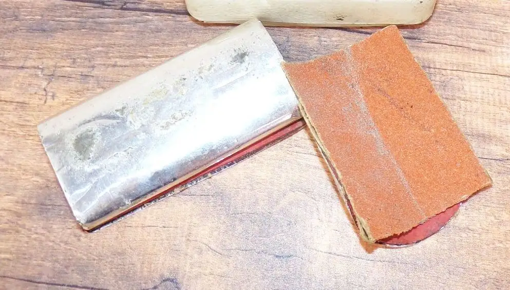 Originaler, alte Kunststoffschachtel mit alten Flickzeug.