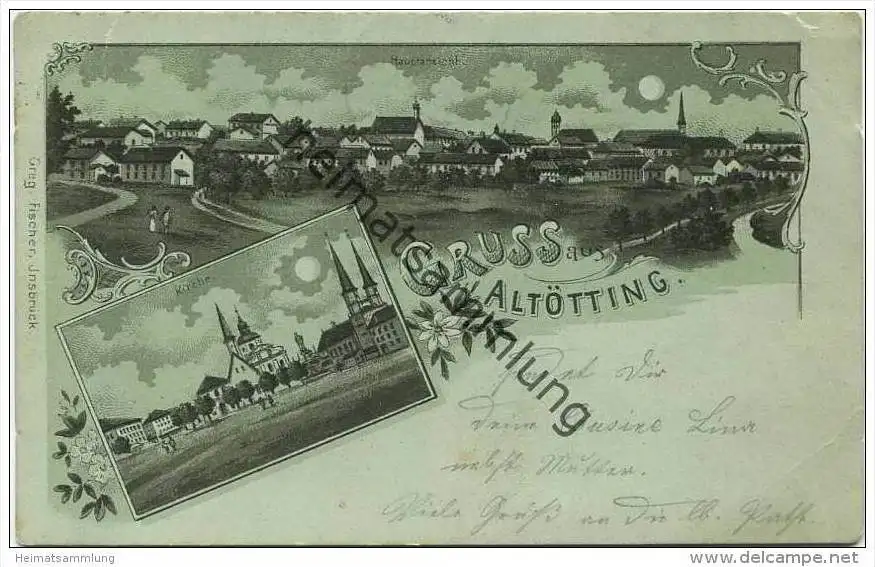Altötting - Hauptansicht - Kirche - Verlag Greg. Fischer Innsbruck - 2 Einrisse oben (E13781) gel. 1900