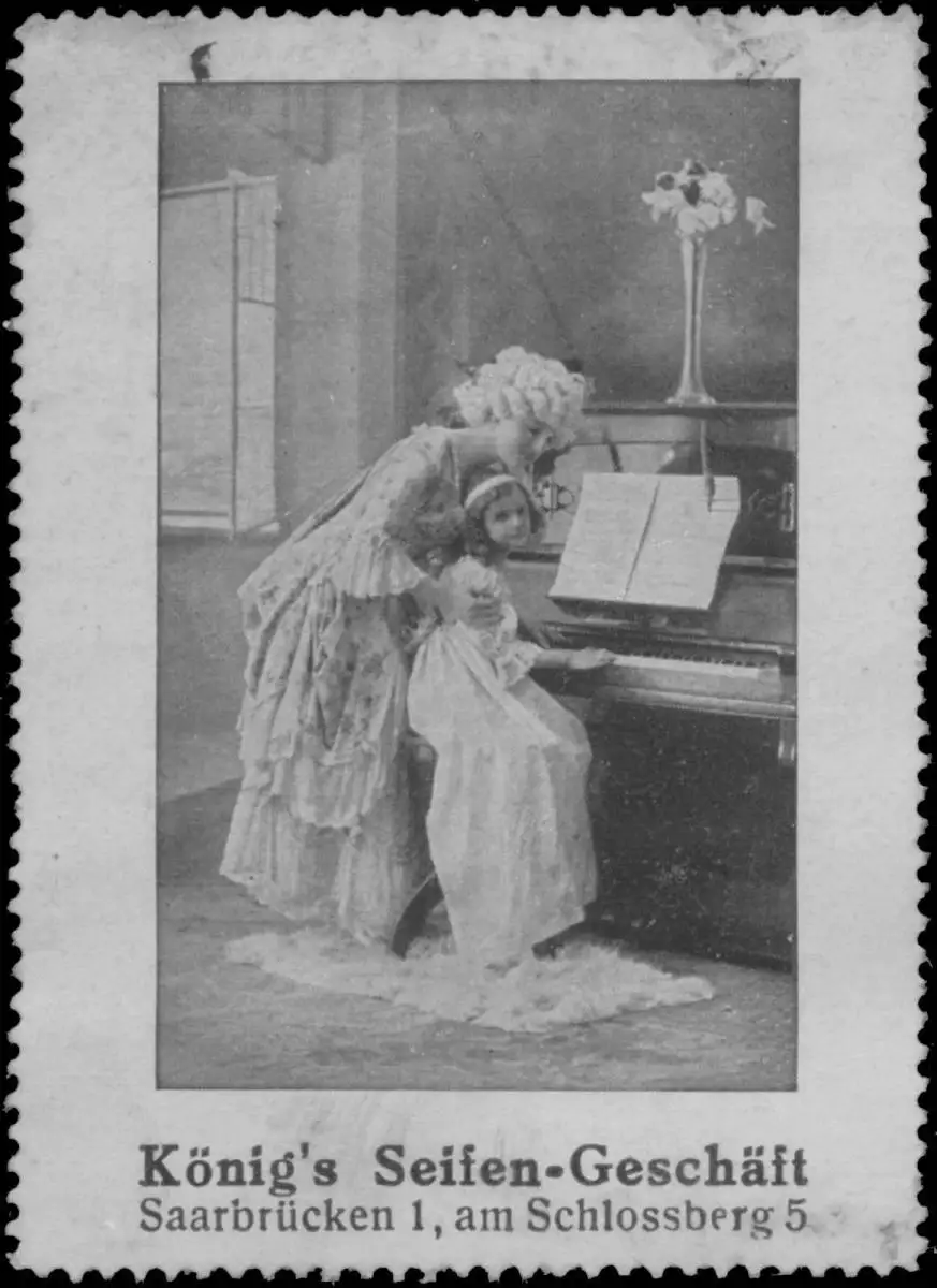 Königs Seifen-Geschäft, am Schlossberg 5, Seife, Musik, Größe/Zustand: 7x5 , fleckig, Original alte Reklamemarke die seinerzeit für die Werbung benutzt wurde