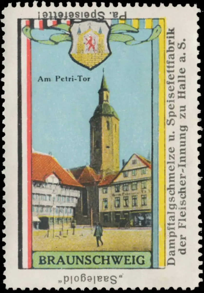 Saalegold, Margarine, Pa. Speisefette, Dampftalgschmelze und Speisefettfabrik der Fleischer-Innung , Größe/Zustand: 6x4 , guter Zustand, Original alte Reklamemarke die seinerzeit für die Werbung benutzt wurde