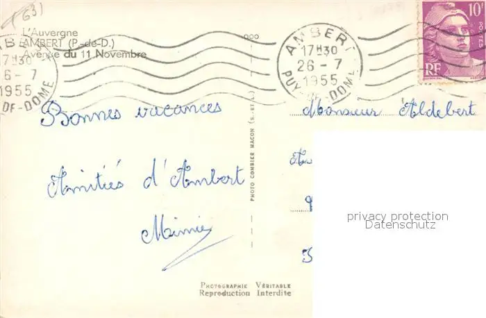 Ambert Avenue du 11 Novembre Ambert postalisch gelaufen 1955 Erhaltung siehe scans [WerneD78] WernPID7