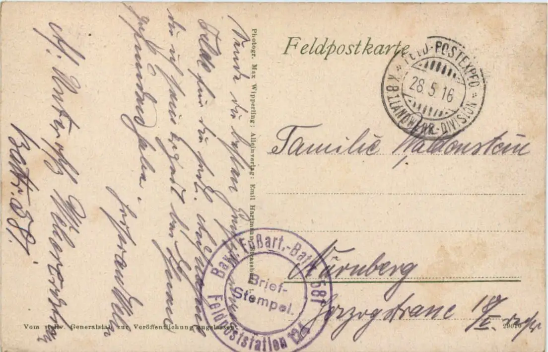 Amenoncourt - Feldpost Bay. Fussart. Batl 581 -651182