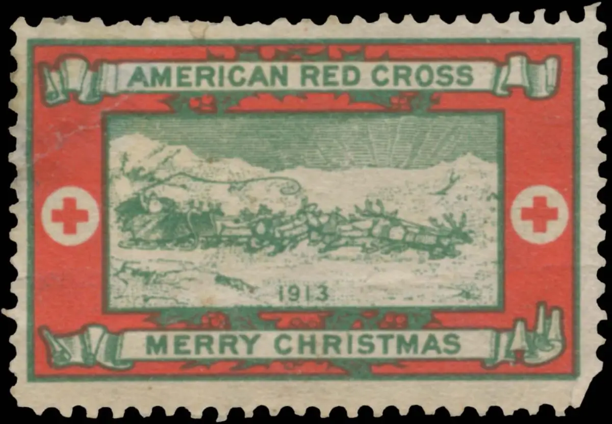Rotes Kreuz von Amerika, Weihnachten, Größe/Zustand: 3x4 , beschädigt, Original alte Reklamemarke die seinerzeit für die Werbung benutzt wurde