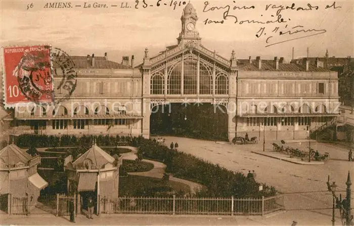 Amiens La Gare Bahnhof Amiens postalisch gelaufen 1910 Erhaltung siehe scans [FriedD77] Frierer