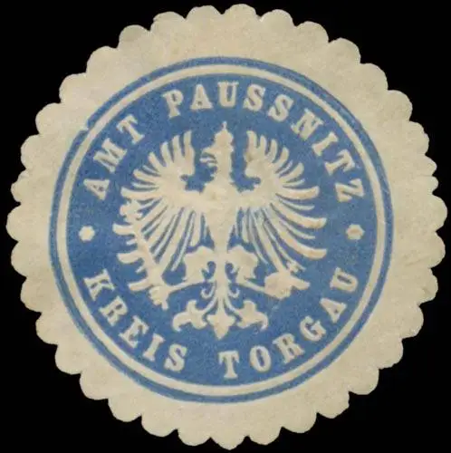 Paussnitz, blau, weiß, geprägt, Größe/Zustand: 3 , guter Zustand, Original Verschluss-Siegelmarke aus Papier welche früher von Behörden, Firmen etc. zum Versiegeln der Briefe benutzt wurden