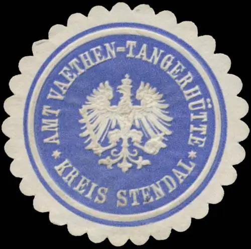 Vaethen, blau, weiß, geprägt, Größe/Zustand: 4 , leicht fleckig, Original Verschluss-Siegelmarke aus Papier welche früher von Behörden, Firmen etc. zum Versiegeln der Briefe benutzt wurden