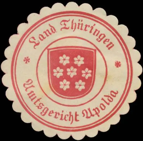 Land Thüringen, rot, weiß , Größe/Zustand: 4 , guter Zustand, Original Verschluss-Siegelmarke aus Papier welche früher von Behörden, Firmen etc. zum Versiegeln der Briefe benutzt wurden