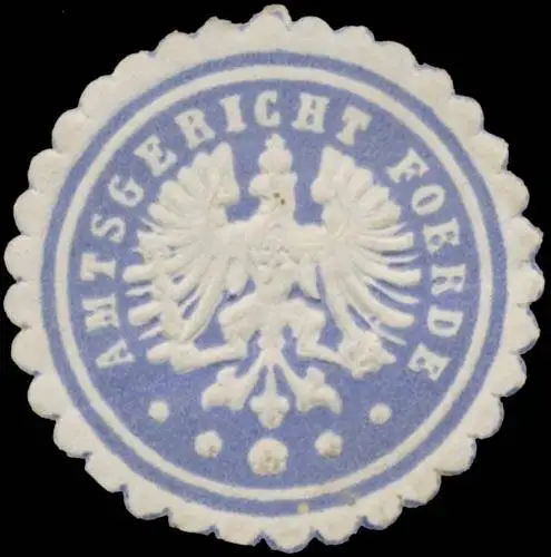 Foerde, blau, weiß, geprägt, Größe/Zustand: 3 , guter Zustand, Original Verschluss-Siegelmarke aus Papier welche früher von Behörden, Firmen etc. zum Versiegeln der Briefe benutzt wurden