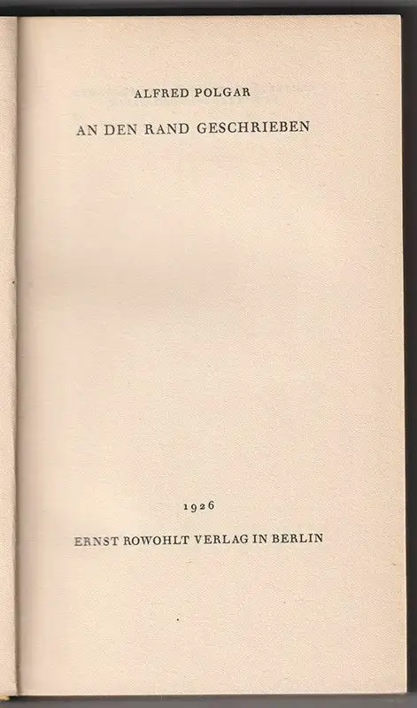 Bln., Rowohlt 1926. 297 S., 1 Bl. OLn. EA.
