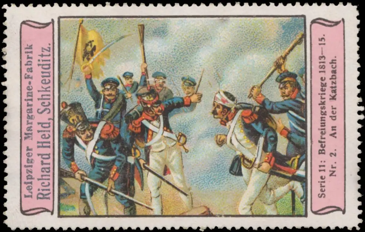 Serie 11, Nr. 2, Befreiungskriege 1813-15, Völkerschlacht, Napoleon, Leipziger Margarine-Fabrik, Größe/Zustand: 5x7 , guter Zustand, Original alte Reklamemarke die seinerzeit für die Werbung benutzt wurde