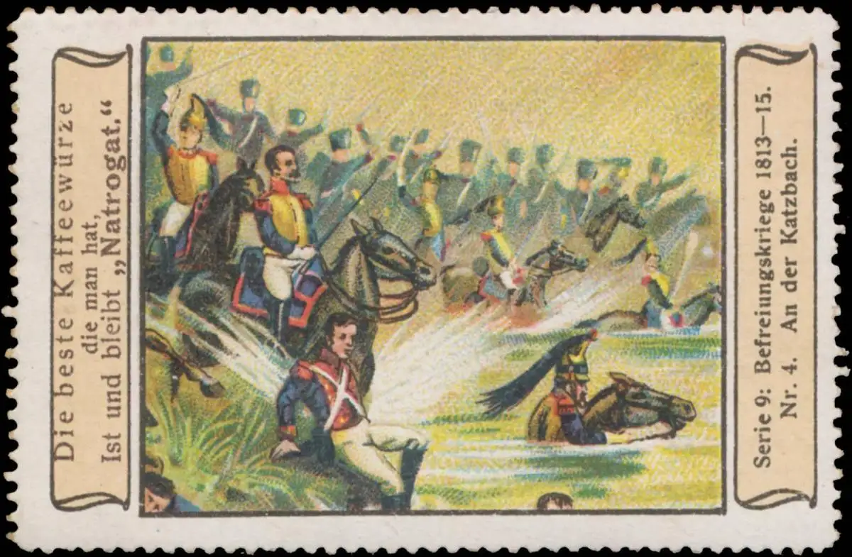 Die beste Kaffeewürze die man hat, ist und bleibt Natrogat. Befreiungskriege, Völkerschlacht, Serie 9, Nr. 4, Größe/Zustand: 5x7 , guter Zustand, Original alte Reklamemarke die seinerzeit für die Werbung benutzt wurde