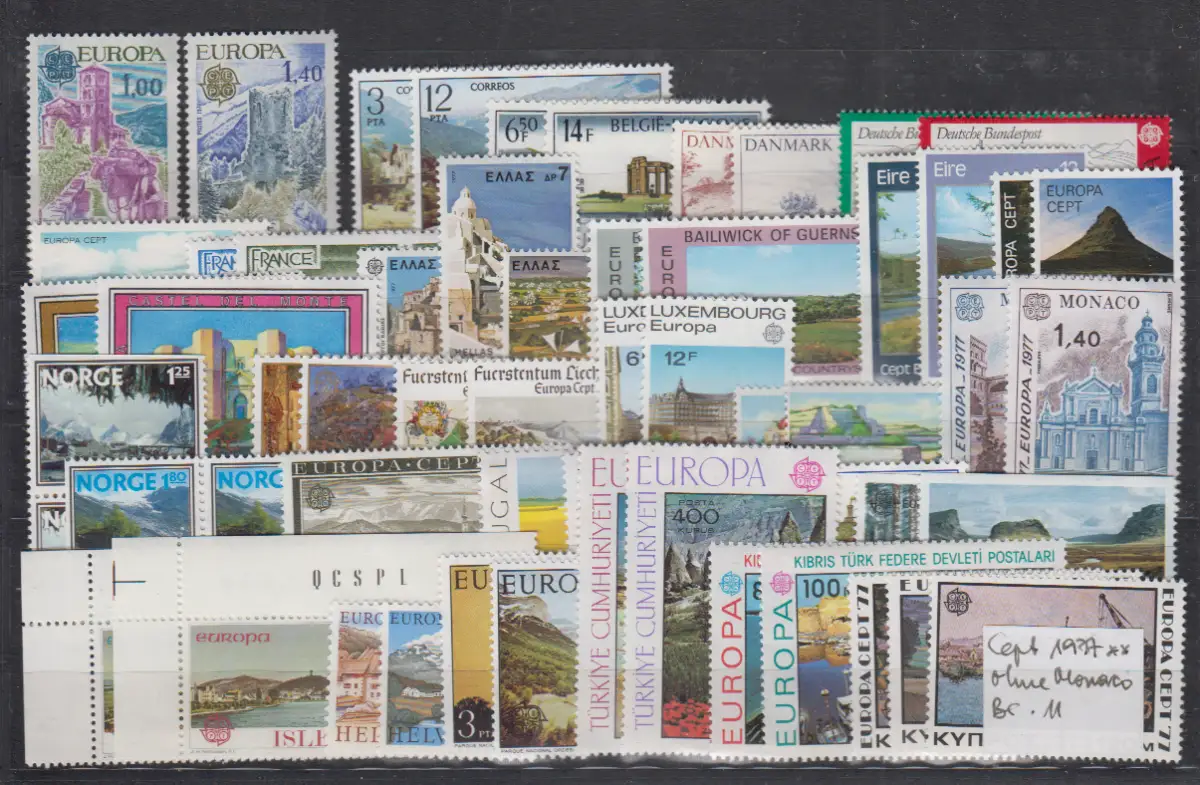 Europa-Cept Jahr 1977 ** bis auf Monco Bl. 11 wohl kpl. 28 Ausgaben