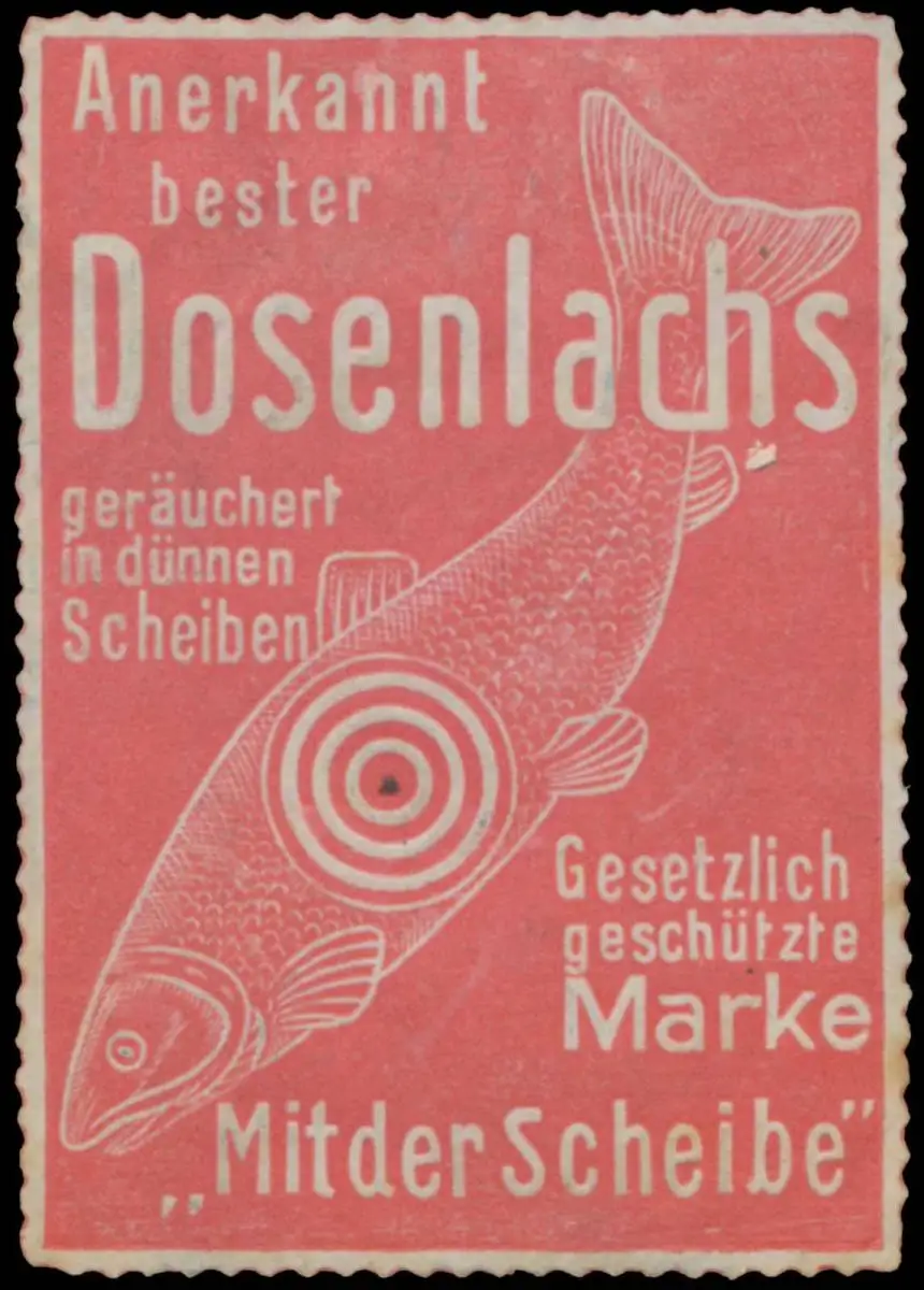 mit der Scheibe, Fisch, Größe/Zustand: 5x4 , beschädigt, Original alte Reklamemarke die seinerzeit für die Werbung benutzt wurde