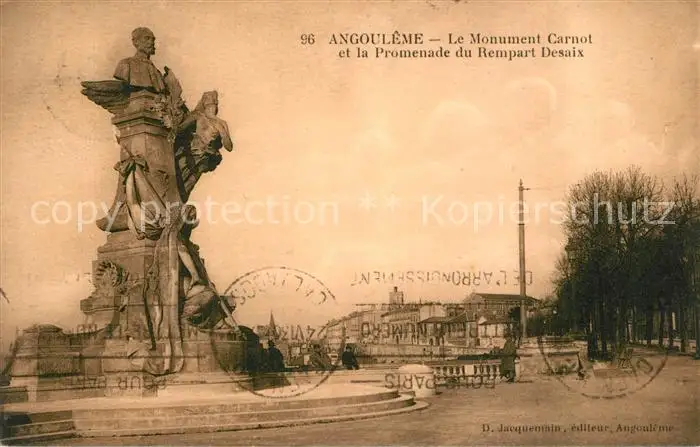 Angouleme Monument Carnot Promenade du Rempart Desaix Angouleme postalisch gelaufen 1930 Erhaltung siehe scans [FriedD77] Frierer