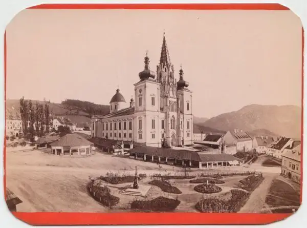 Mariazell, Nicolaus Kuss [1884] Maße: 151 x 112 mm. Ecken abgerundet beschnitten.