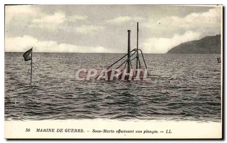 Cartes postales Bateau Guerre Sous marin effectuant une plongee