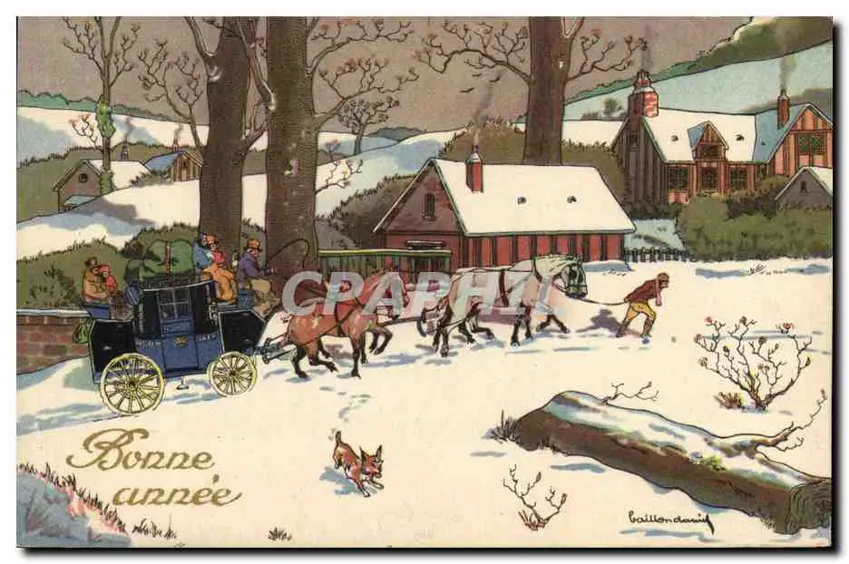 Cartes postales Fantaisie Illustrateur Bonen Annee Caleche
