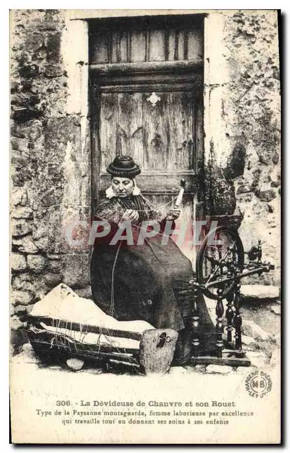 Cartes postales Folklore La devideuse de Chanvre et son Rouet