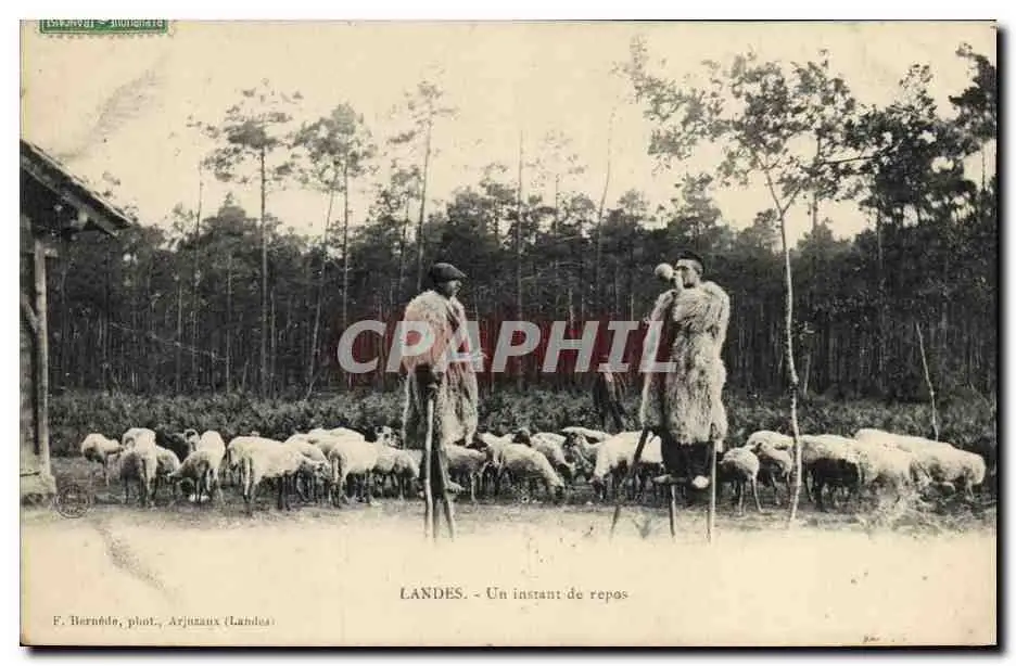 Cartes postales Folklore Landes Un instant de repos Moutons