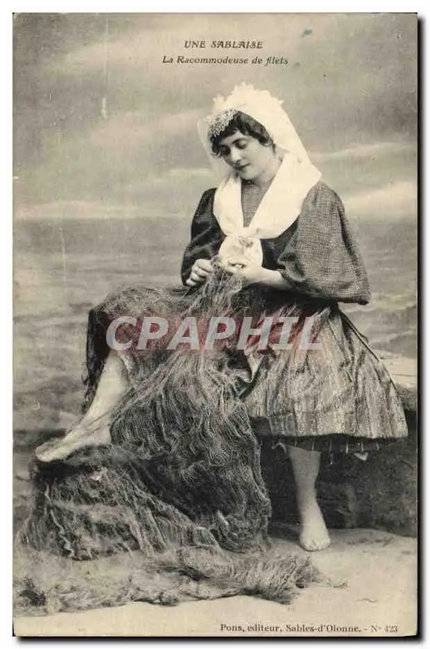 Cartes postales Folklore Une Sablaise La racommodeuse de filets
