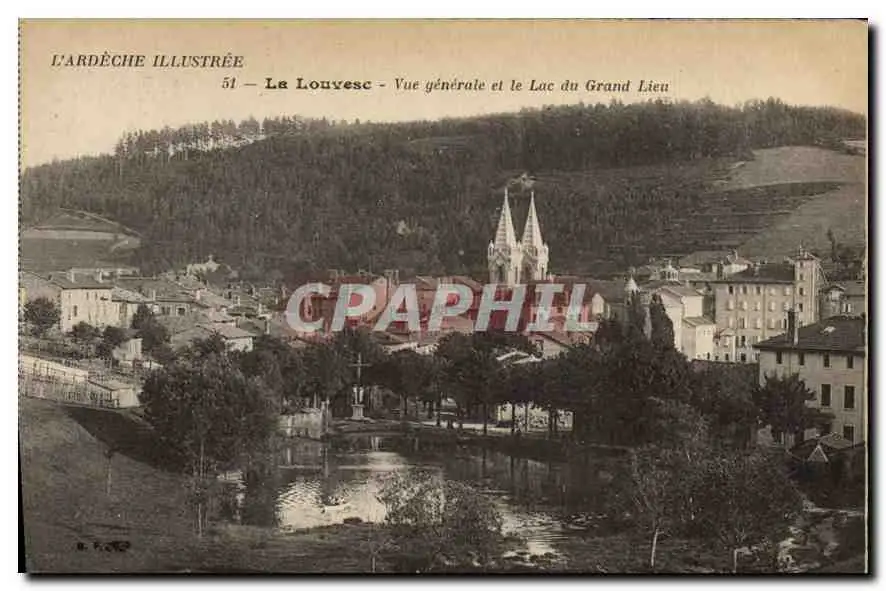 Cartes postales L'Ardeche Illustree La Louvesc vue generale et le Lac du Grand Lieu