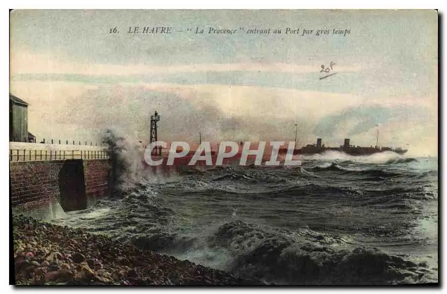 Cartes postales Le Havre la Provence entrant au port par gros temps