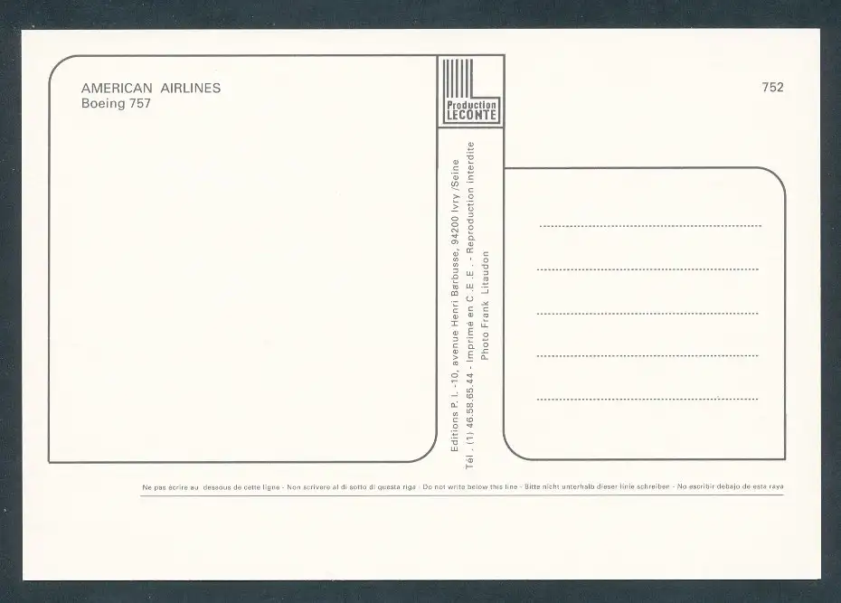[Ansichtskarte] AMERICAN ARLINES, Boeing 757.