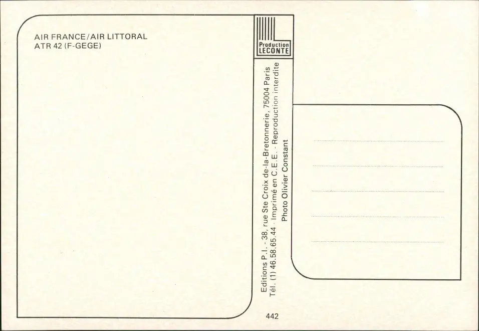 Ansichtskarte ATR 42 (F-GEGE) AIR FRANCE/AIR LITTORAL 1983