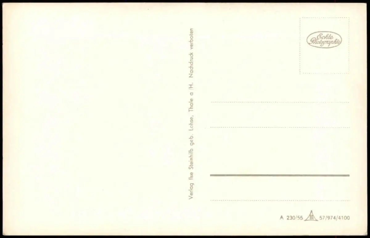Verlag: Bildkarten - Verlag u. -Vertrieb Ilse Steinhilb geb. Lohse, 4308 Thale/Harz