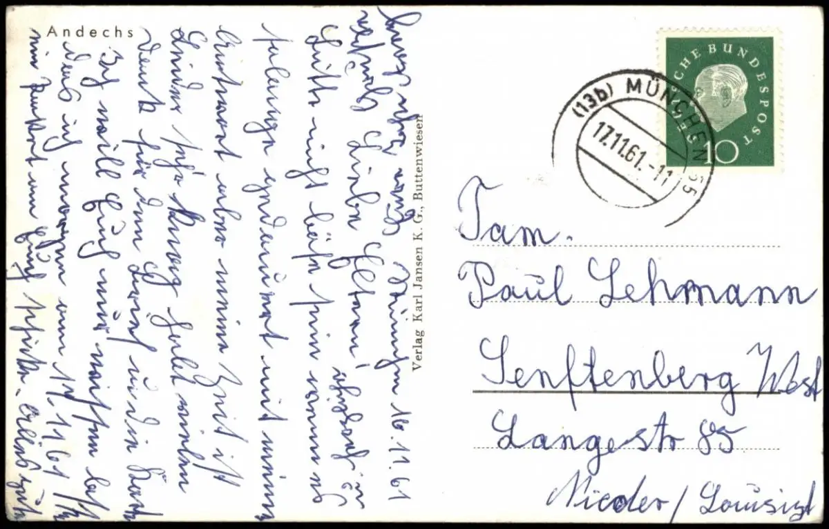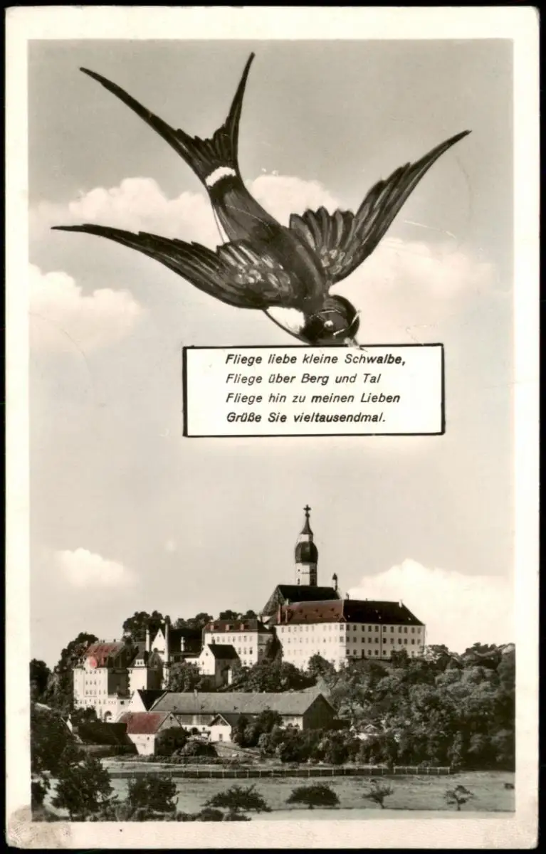 Ansichtskarte Andechs Teilansicht mit Schwalben-Gruss 1961