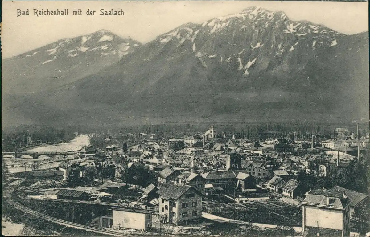 Ansichtskarte Bad Reichenhall Stadtblick mit Bahnstrecke 1929