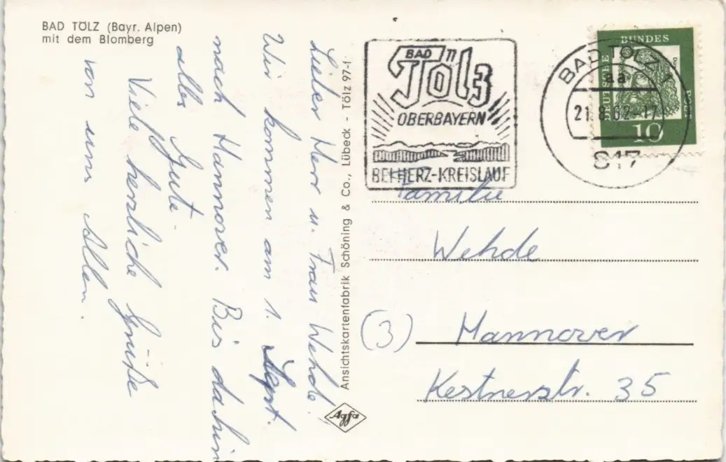 Ansichtskarte Bad Tölz Blick auf die Stadt 1962