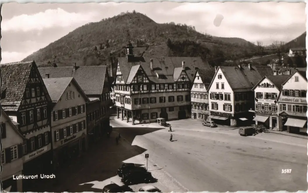 Ansichtskarte Bad Urach Marktplatz aus der Vogelschau 1962