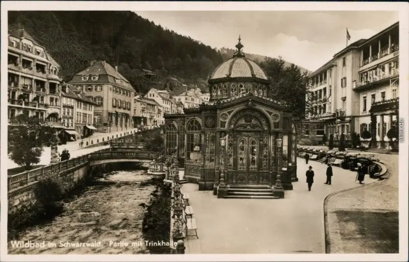 Ansichtskarte Bad Wildbad Partie mit Trinkhalle 1932
