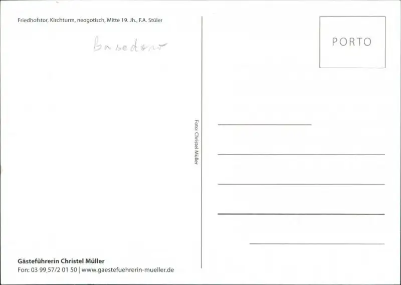 Ansichtskarte Basedow (Mecklenburg) Friedhofstor, Kirchturm 2000