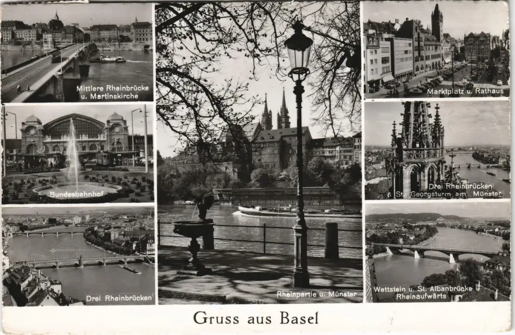 Ansichtskarte Basel MB: Bahnhof, Stadt, Markt 1960