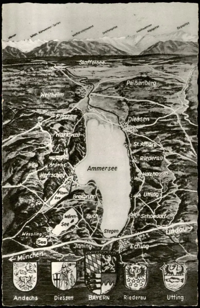 Ansichtskarte .Bayern Ammersee Landkarten AK Weitheim etc 1961
