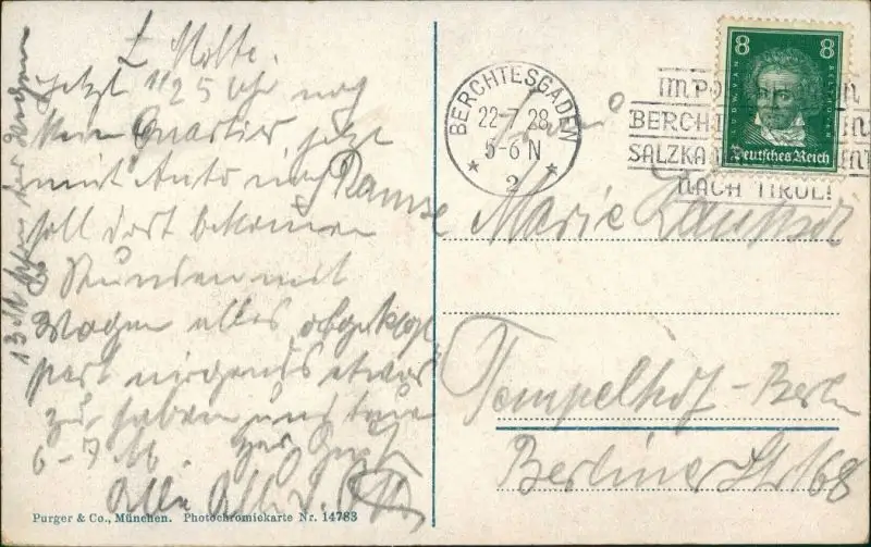 Ansichtskarte Berchtesgaden Stadtpartie 1928
