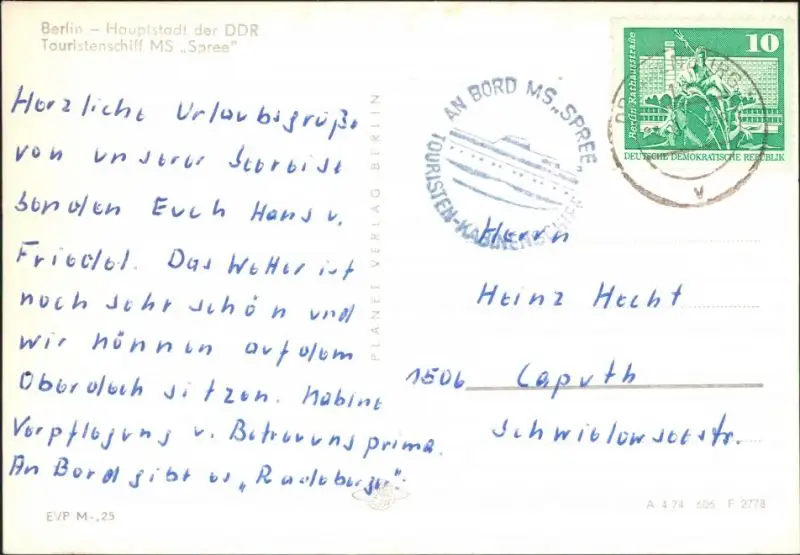 Ansichtskarte Berlin Weiße Flotte Berlin - MS "Spree" 1974