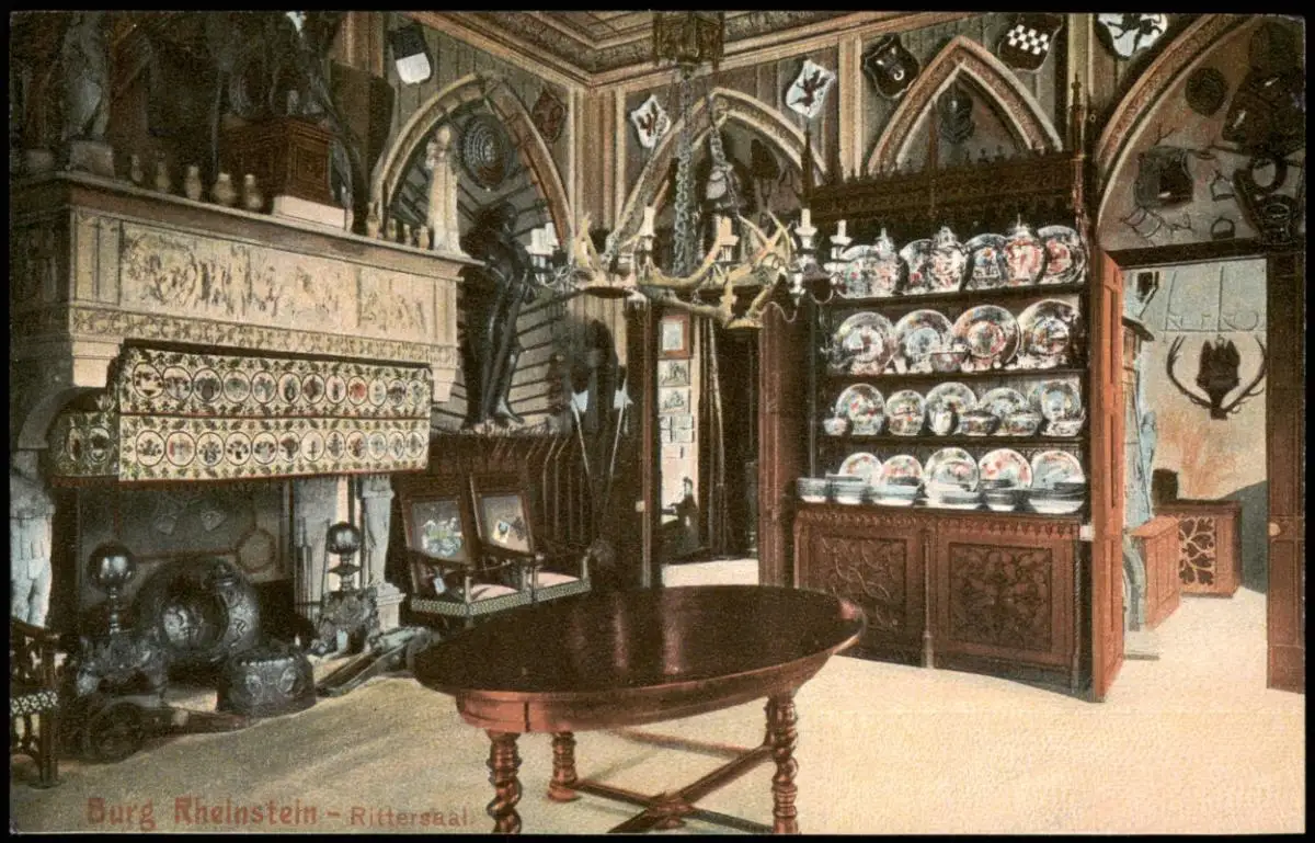 Ansichtskarte Bingen am Rhein Burg Rheinstein - Rittersaal, Kamin 1913