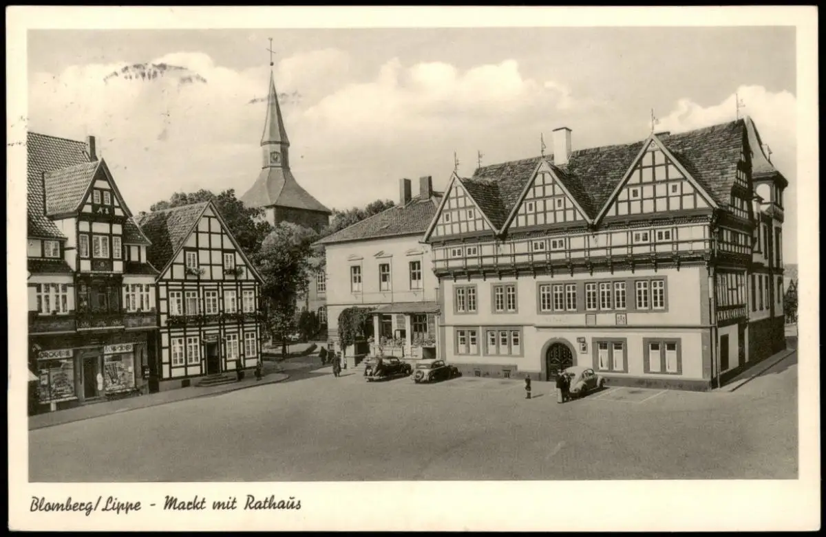 Ansichtskarte Blomberg Markt, Rathaus - Autos 1956